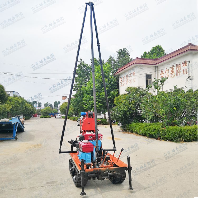 我廠生產(chǎn)的BZ-50SL型鉆機(jī),是在50系列鉆機(jī)的基礎(chǔ)上升級改造的,解決了傳統(tǒng)小型液壓鉆機(jī)鉆桿短,鉆進(jìn)時(shí)需要反復(fù)提鉆下鉆的作業(yè)模式,該機(jī)型新增了履帶底盤,減輕了用戶的轉(zhuǎn)場負(fù)擔(dān),提高了作業(yè)效率,鉆桿取芯鉆具等放在底盤上,發(fā)動機(jī)器就可以轉(zhuǎn)場了,同時(shí)增加了移機(jī)功能,鉆桿長度達(dá)到2米,鉆塔高度4.5米,精簡了作業(yè)流程,換桿不需要拆卸牛頭,提升了鉆進(jìn)速度。