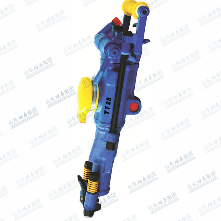 YT28型氣腿式鑿巖機,是一種新型的鑿巖機械。它廣泛應(yīng)用于采石、開礦、巷道掘進(jìn)以及各種鑿巖作業(yè)中鉆鑿爆破孔,是礦山、水利、建材、能源、交通、軍工及地質(zhì)工程中不可缺少的重要機具。YT28型鑿巖機適宜于在中硬或堅硬(f=8~18)的巖石上鉆鑿水平、傾斜和垂直炮孔,炮孔直徑一般為34~42毫米,有效經(jīng)濟鉆深可達(dá)5米。既可與本公司的FT160型氣腿配套使用,也可裝在鉆車或臺架上工作。本機配有FY200A型注油器,以保證良好的潤滑。
